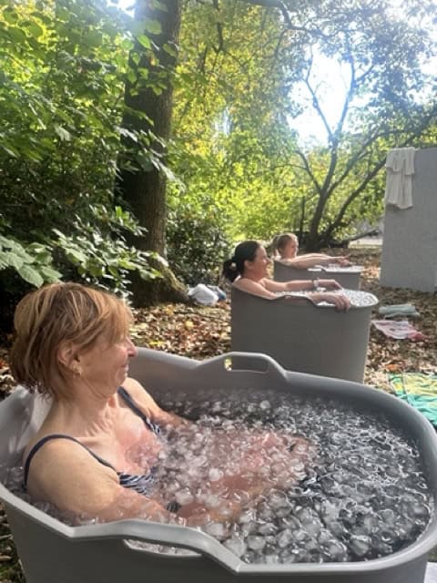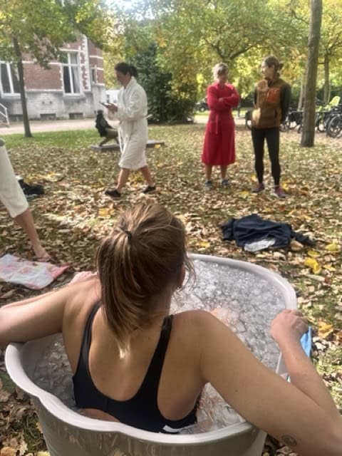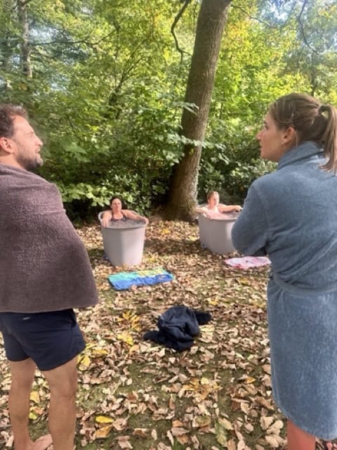Onder begeleiding van ademhalings- en meditatieoefeningen daalden de deelnemers stap voor stap af in het ijsbad — een krachtige ervaring die niet alleen de focus, maar ook de mentale weerbaarheid versterkte.